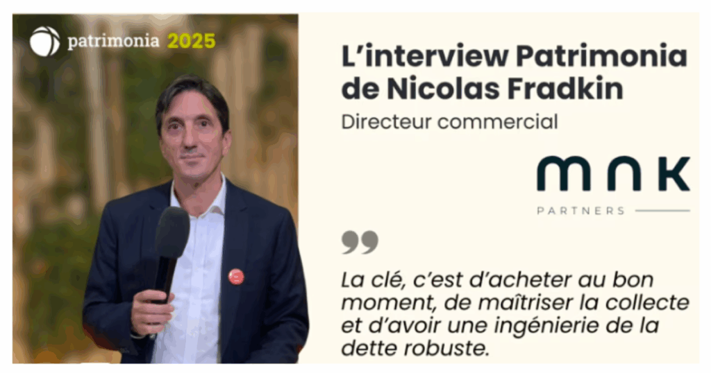 L’interview Patrimonia de Nicolas Fradkin, directeur commercial. MNK Partners, fondée en 2017, a lancé en 2024 sa première SCPI, Reason. Déjà plus de 20 M€ collectés et une performance potentielle annoncée de plus de 10,5% pour sa première année. Sa force : une stratégie immobilière core et un outil quantitatif unique qui analyse 1 500 villes